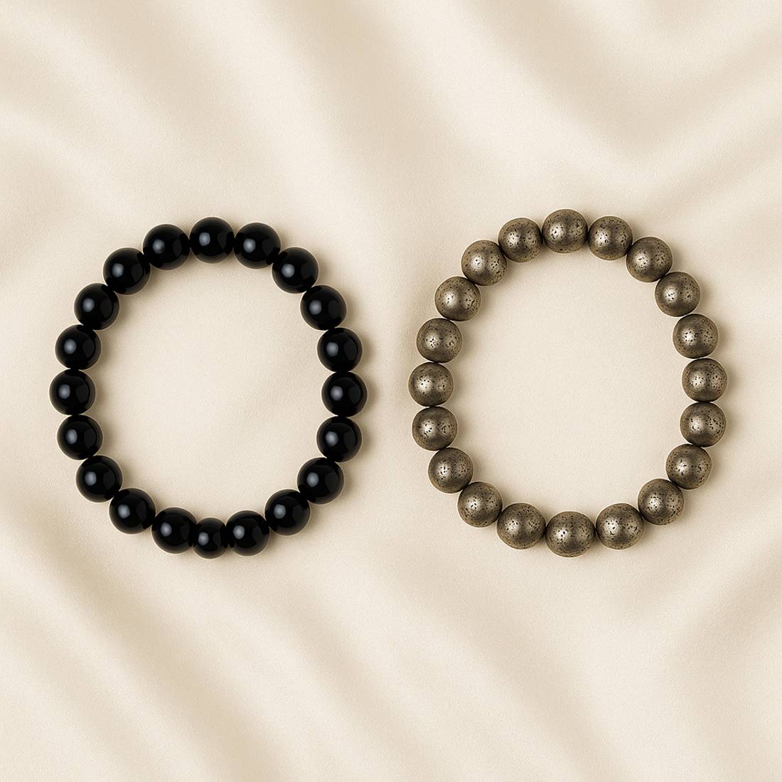 “Style with formal wear—golden Pyrite shines with confidence while Black Tourmaline adds bold protection energy.”